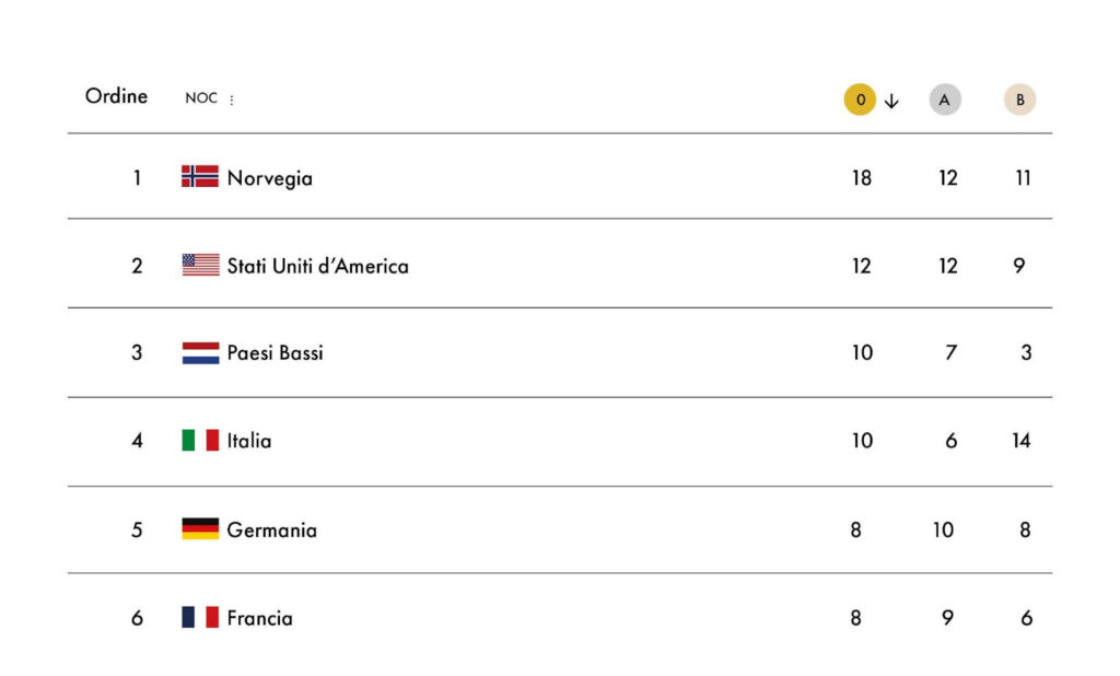 - Riflessione critica: confronta questa graduatoria con quella ufficiale (che privilegia il numero di ori). Quali cambiamenti noti? Spiega, dal punto di vista matematico, perché i risultati si differenziano.