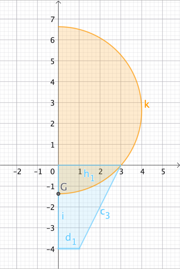 Per comprendere come si origini il solido, è necessario individuare le figure piane che ruotano attorno all’asse $y$. “Tagliando” la sezione lungo l’asse di simmetria, otteniamo: