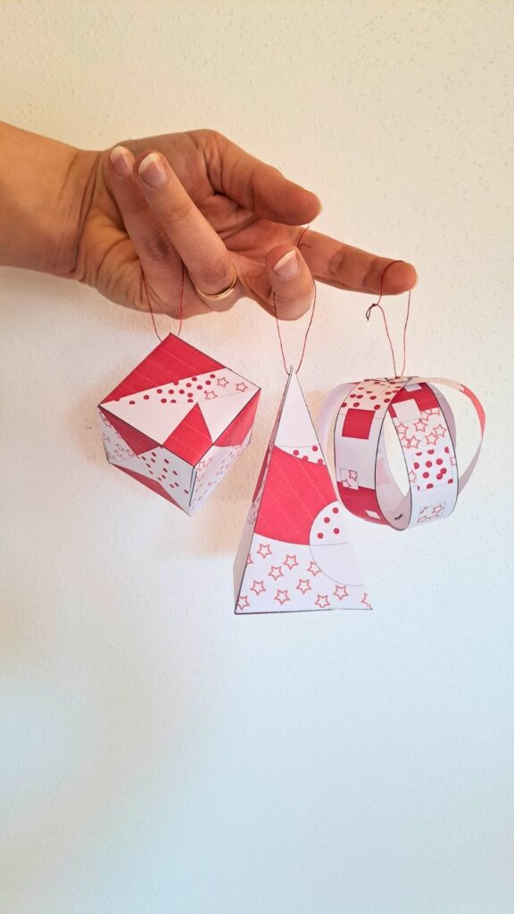 Una volta appese, sfere, cubi e piramidi diventano un segno visibile del lavoro della classe: un risultato collettivo costruito giorno dopo giorno, esercizio dopo esercizio. Un modo leggero, ma efficace, per avvicinare la matematica al clima delle feste e dare valore alla costanza e all’impegno.