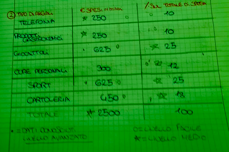 Richiamando invece l’esercitazione sulle percentuali proposta in un precedente articolo, dove venivano riportate sei categorie di spese natalizie in tre tabelle, ciascuna relativa a una parte del territorio nazionale (Sud, Centro e Nord), si possono stimolare studentesse e studenti a formulare tre tipi di problemi (rispettivamente di difficoltà bassa, media e avanzata) sulla base dei dati delle tabelle.